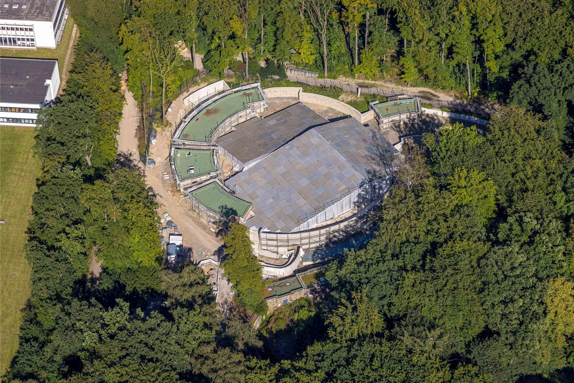 Auch die Sommersaison 2026 wird der Dortmunder Zoo ohne seine neue Robbenanlage bestreiten müssen. Ausgerechnet das Herzstück, die von einer großen Zuschauertribüne eingerahmten Robbenbecken, ist bis heute nicht fertig. Während Stallungen, Technik, Wege, Kiosk und Toilettengebäude weitgehend stehen, herrscht im Inneren der Becken weiterhin Stillstand: nackter Beton, geschützt durch Folien.